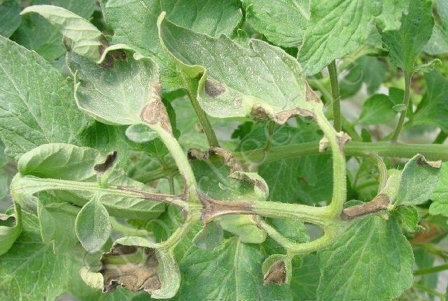 开始发病时叶片上出现水渍状浅绿色斑点,扩展很快,1~2天内因受叶脉限制而呈多角形水渍状病斑。尤以早晨水渍状角斑明显,中午稍隐退,反复两天后水渍状病斑变为黄褐色,湿度大时病斑背面出现灰色霉层。严重时叶片布满病斑,病斑连片使叶片卷缩干枯,最后叶片枯黄而死。