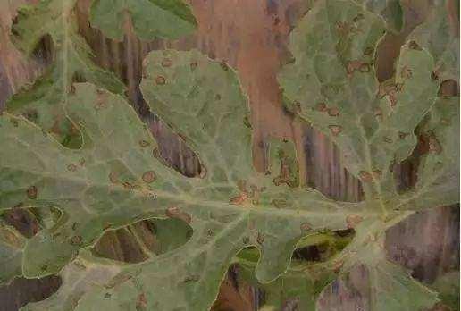 主要发生在叶片上,最初出现油渍状小斑点,以后扩大,因受叶脉限制形成多角形黄褐色病斑。潮湿时,叶背病斑处有乳白色菌脓,最后病斑容易开裂或穿孔。果实及茎上病斑初期呈水渍状,表面有白色菌脓。果实上病斑可向内扩展,沿维管束的果肉逐渐变色,并可蔓延到种子。幼苗期发病,子叶上初生油渍状圆斑,稍凹陷,后变褐色干枯。病部向幼茎蔓延,可引起幼苗软化死亡。黄瓜细菌性角斑病的症状和霜霉病很相似,往往容易误诊,错误用药,影响防治效果。