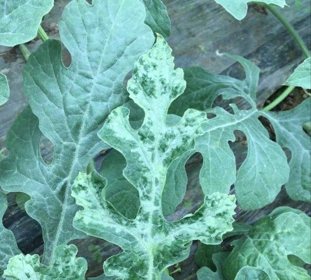 甜瓜花叶病毒只侵染葫芦科植物,在甜瓜上引起系统花叶,在西葫芦的叶片上呈斑驳、畸形(鸡爪叶),对西瓜很容易侵染,表现为花叶畸形(小叶皱缩)。