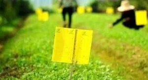 2、晴天的诱集效果明显优于阴雨天,害虫对色彩的趋性在运动时远大于静止时。如用手轻拍有烟粉虱的植株,烟粉虱成虫会成群地、强劲地飞扑向黄板,而未拍动植株上的烟粉虱飞扑向黄板的速度、距离和数量明显不及。黏虫色板应与其它综合防治措施配合使用,才能更有效地控制害虫为害。